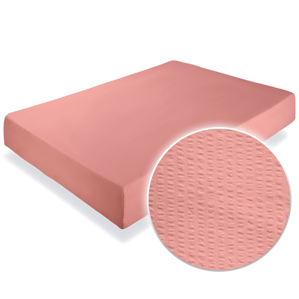 Cearceaf de pat cu elastic, fabricat cu tesatura Crepe din fibra naturala 100% bumbac de calitate.